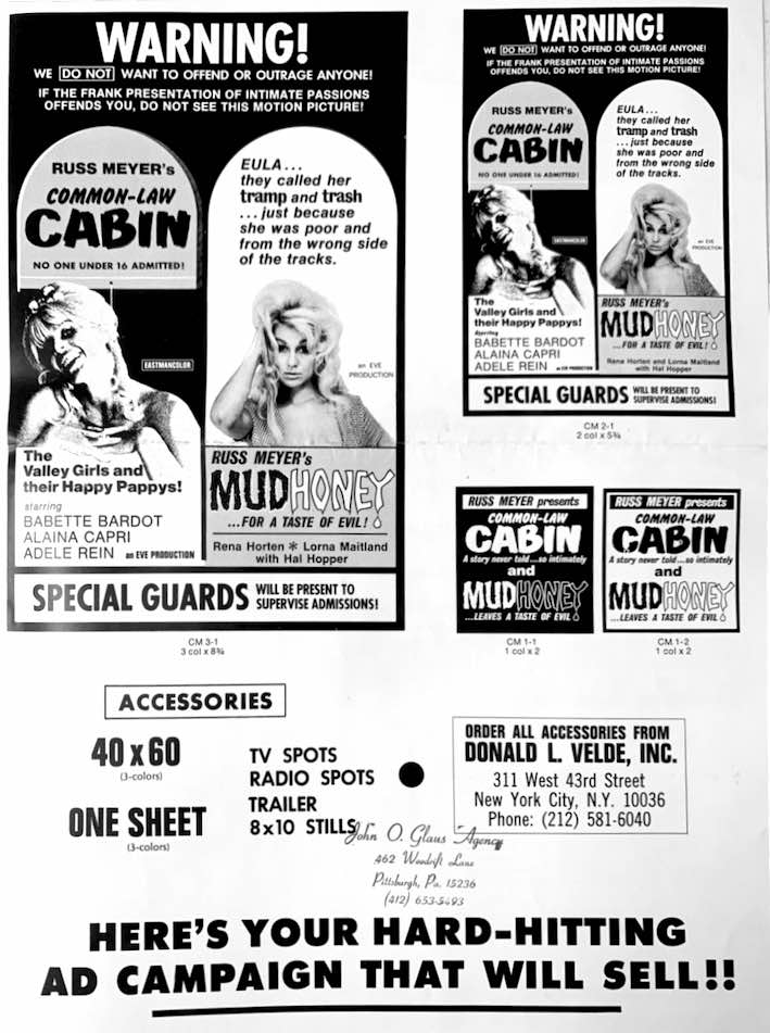 Too much… for one man! A collection of international posters, front-of-house stills, video sleeves, film festival posters and rare UK press ads for cinema club screenings in the 1960s for Russ Meyer’s remarkable, unique and revolutionary film catalogue. That most of these are currently unavailable for viewing is a crime…