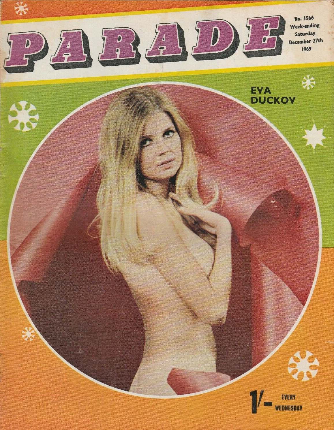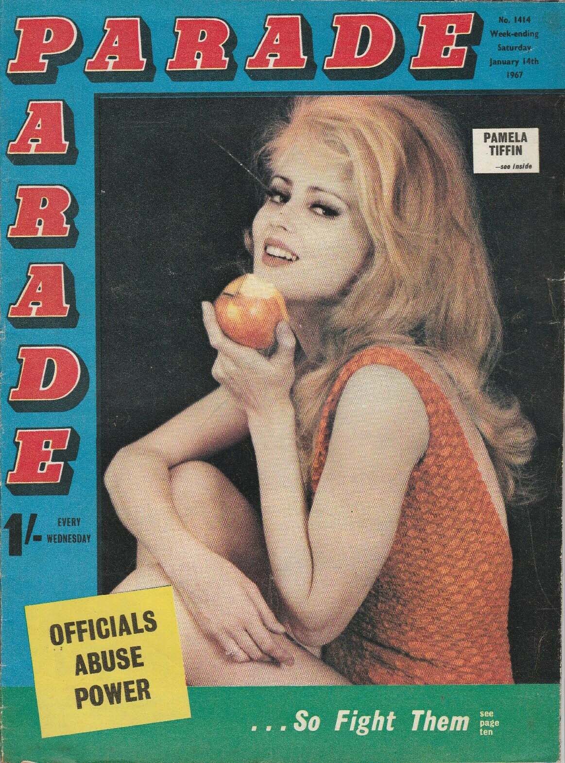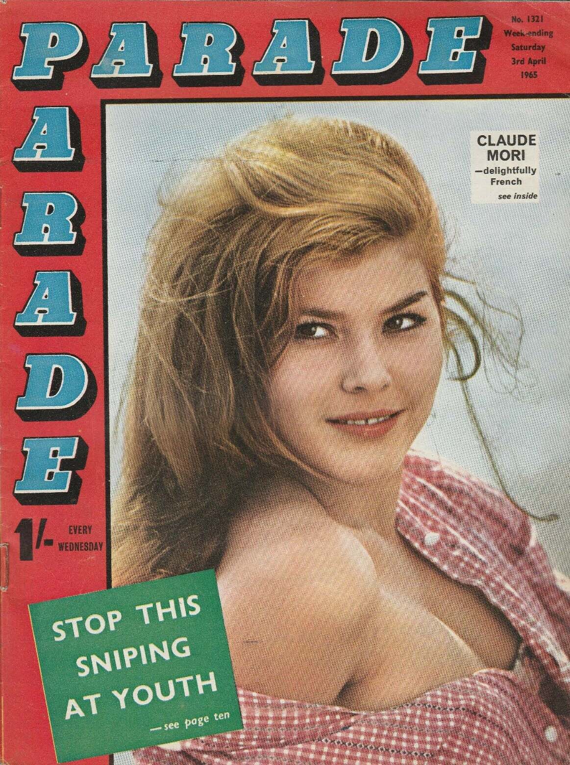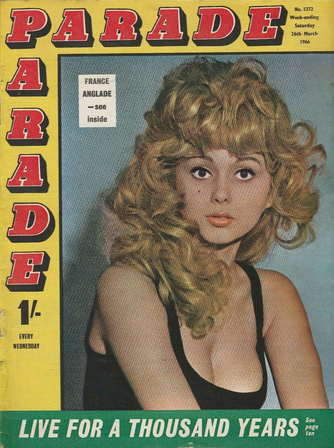Connoisseurs might argue the point, but for us, the glory days of Parade were the 1960s. The combination of sexy starlets and scandal – often moralising stories and campaigning outrage – was a fascinating one, but it is the covers that really stand out as a genuine parade of 1960s glamour. If you want to see how sex symbols, movie starlets and international top totty – not to mention public tastes and moral attitudes – evolved during the decade, this is as good a place to start as any, as film stills featuring big names like Sophia Loren and Gina Lollobrigida give way to bikini shots of continental models and, eventually, near-topless cheesecake images. Along the way, the international starlets with exotic names mix with big-name movie stars like Raquel Welch (whose name is misspelt at one point as Rachel), Charlotte Rampling, Ann-Margret and Ursula Andress; cult Euro movie stars like Silvia Koschina, Marissa Mell, Pamela Tiffin, Janet Agren, Margaret Lee and Claudia Cardinale; Hammer glamour girls Veronica Carlson, Yutte Stensgaard and Yvonne Romain; and legendary British nude models Margaret Nolan (still in her Vicky Kennedy persona), Annette Johnson and June Palmer – all featured on a virtually unchanging design throughout the decade. It’s a fascinating archive – and our gallery here only scratches the surface of a decade that saw over 600 editions published.