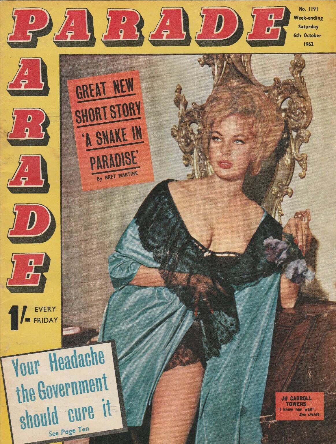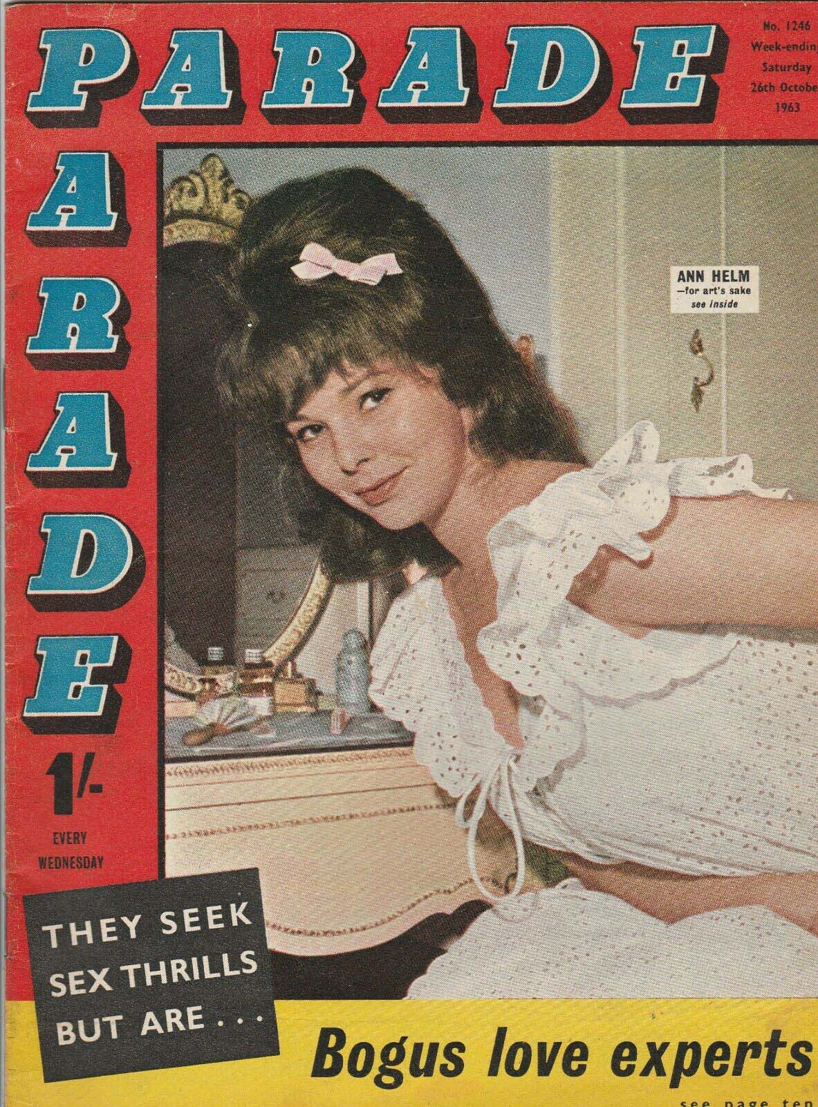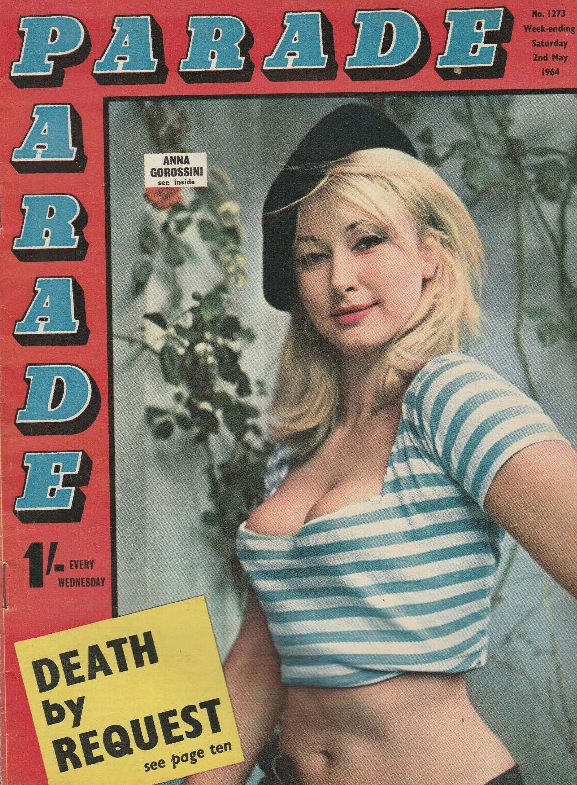 The history of men’s magazines in the UK might be written through the long run of Parade magazine, which began life back in 1916, under the title Blighty, where it was pitched at servicemen in the first world war as a humorous, slightly ribald rival to Titbits and Reveille, two other long-running publications. Although it initially only lasted until 1920, the second world war saw it revived as a weekly publication in 1939, and this time it lasted far beyond the war. In 1958, it was rebranded as Blighty Parade and had the emphasis changed to make it a pin-up magazine, before finally becoming simply Parade in 1960. By this time, a format that mixed glamour girls, humour and tabloid-style scandal and sensationalism was in place and would remain that way for the next couple of decades. As time went on, the magazine became more risqué – reflecting the changes to tabloids of the era, it would be featuring topless glamour models by the 1970s. In the 1980s, the magazine was bought by David Sullivan and rebranded as a monthly software girly magazine, less explicit than his other magazines like Playbirds and Whitehouse, but a world away from the magazine of a decade earlier. By 1999, as British obscenity laws finally loosened, it went hardcore, as far removed from its original as could be imagined.