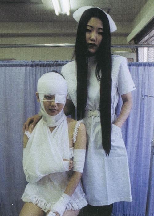 If that moment had then become an actual fetish – the sort of thing that plays on your mind continually and becomes part of your sexual DNA – then perhaps you would be like Romain Slocombe, the French artist, writer and photographer who has made something of an artform of picturing exclusively Japanese girls (and so we can assume that Japanese girls are also a sexual preference for him) in bandages, plaster casts, slings, wheelchairs, braces and crutches – the medical paraphernalia associated with accident and injury.