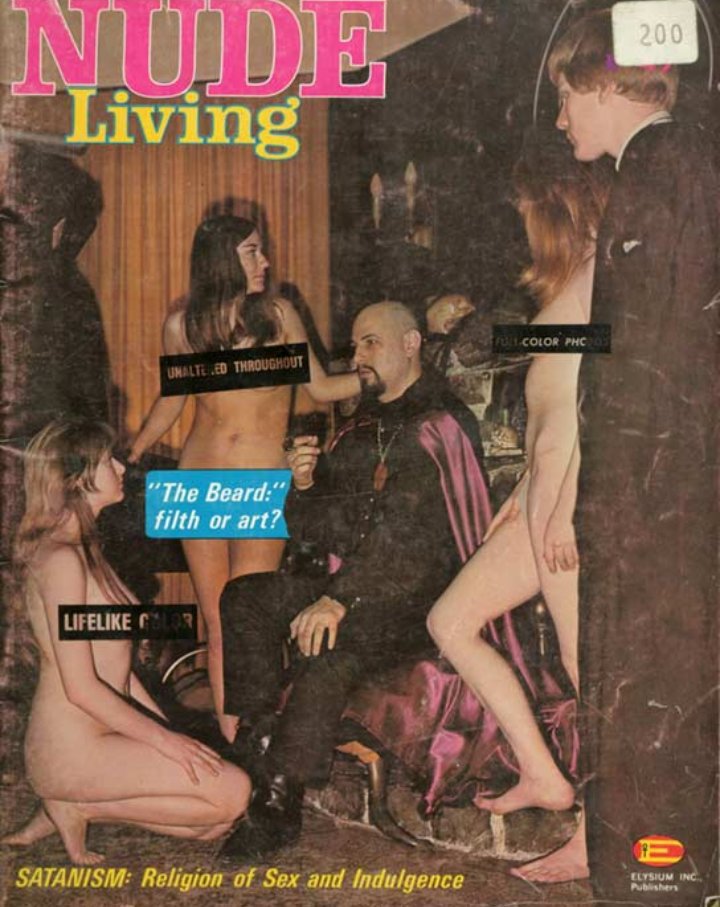 The erotic occult boom even crept into less specialist sex magazines and scandal sheets, where a dash of Satanism and the lure of naked witchcraft rituals helped spice things up for their readers. Most adult and tabloid magazines of the era probably ran pieces on occultism, but some went all the way and featured the sordid activities on the front cover – all the better to attract readers who would pore over the images and possibly even read the articles, lips pursed with disapproval even as they loosened their trousers. Most of these magazines would source their images from the publicity-hungry Anton LaVey and Alex Sanders, both of whom were always keen to put together photogenic rituals involving attractive and naked young women.