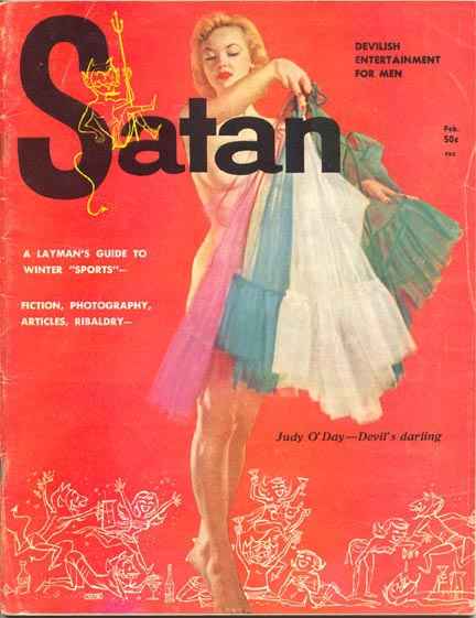 While semi-serious occult magazines were commonplace in the early 1970s, the 1960s saw a few girlie magazines appear that used Satanic titles as a way of emphasising their sinful content. That content might have only been coy and airbrushed nudes, but it was hot stuff for the time, and with racy fiction and semi-serious features backing the bare flesh up, these magazines were as sizzling as the titles suggested, at least at the time. While the magazines made some effort to stick to the occult theme that the titles suggested, they quickly ran out of occult content and so would eventually feature a more varied content, with even the cover images sometimes forgetting the magazine theme.