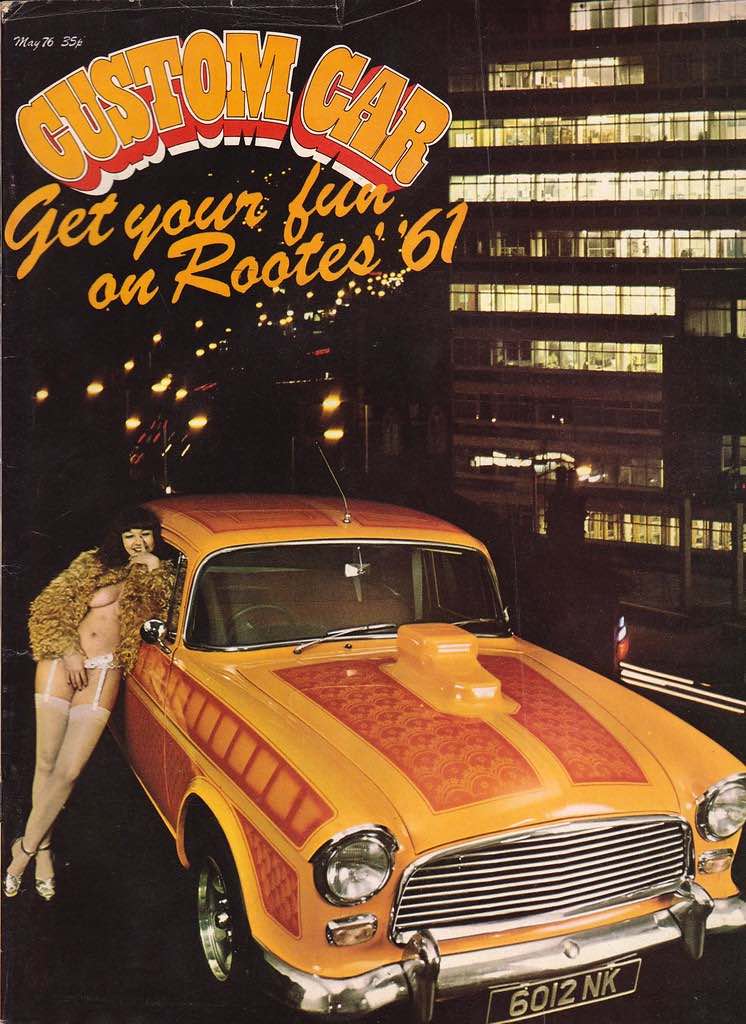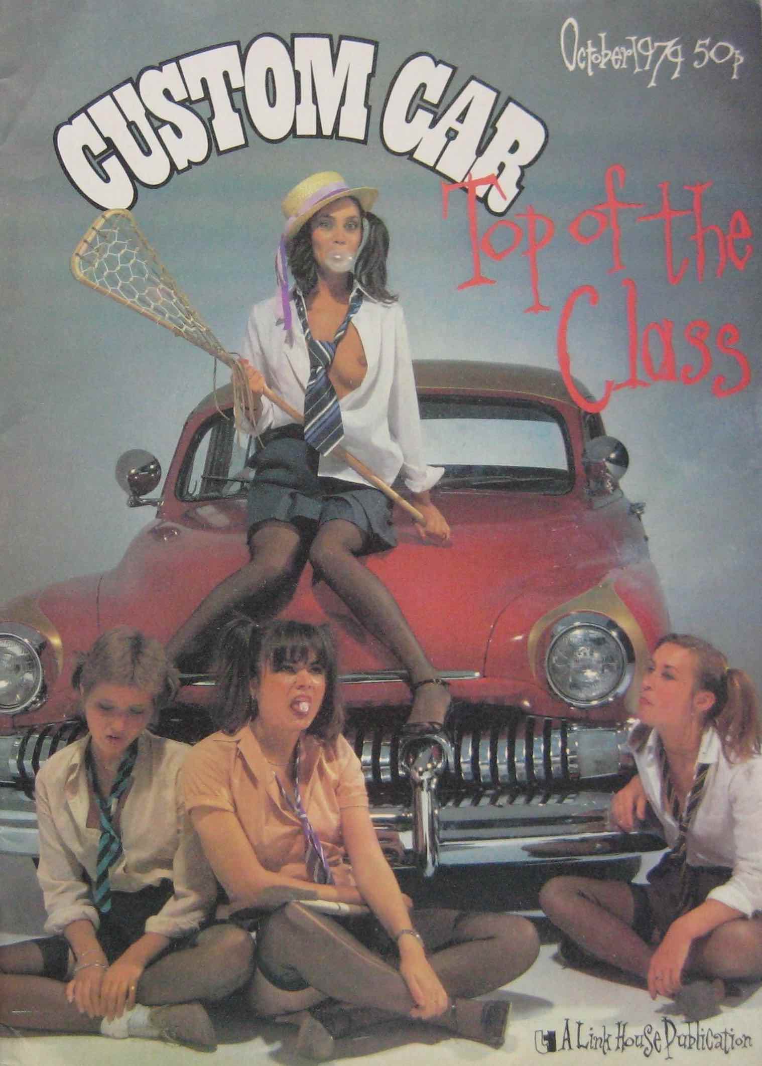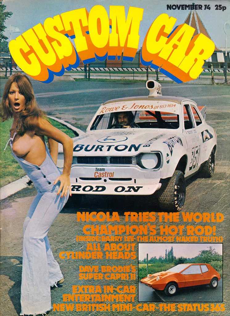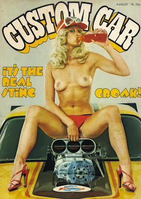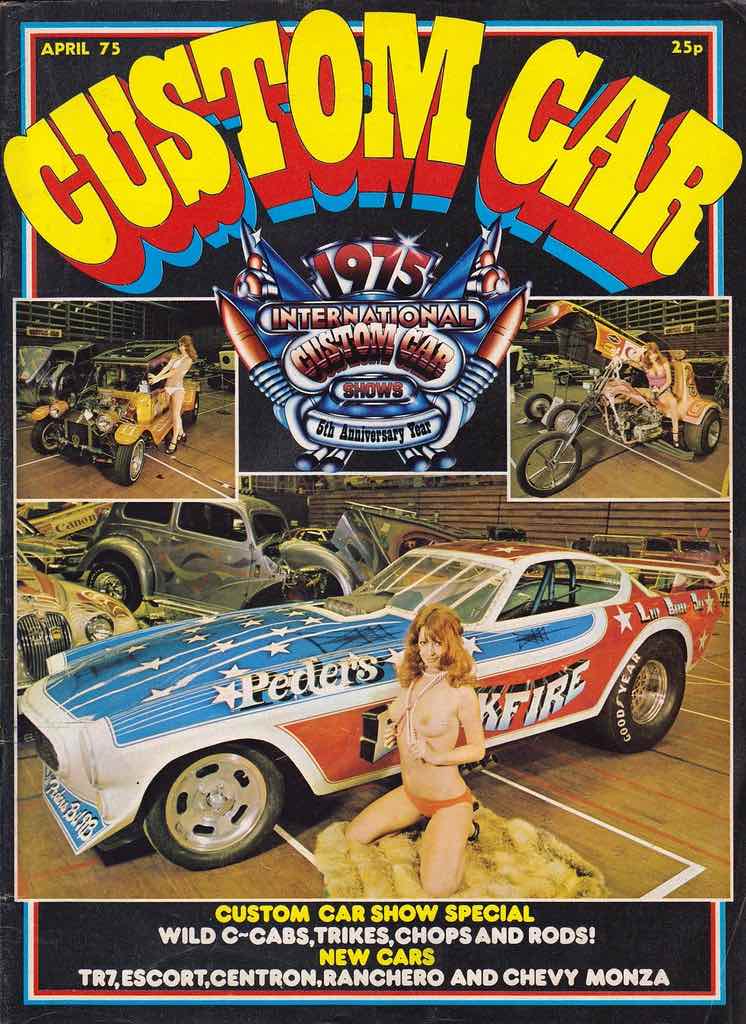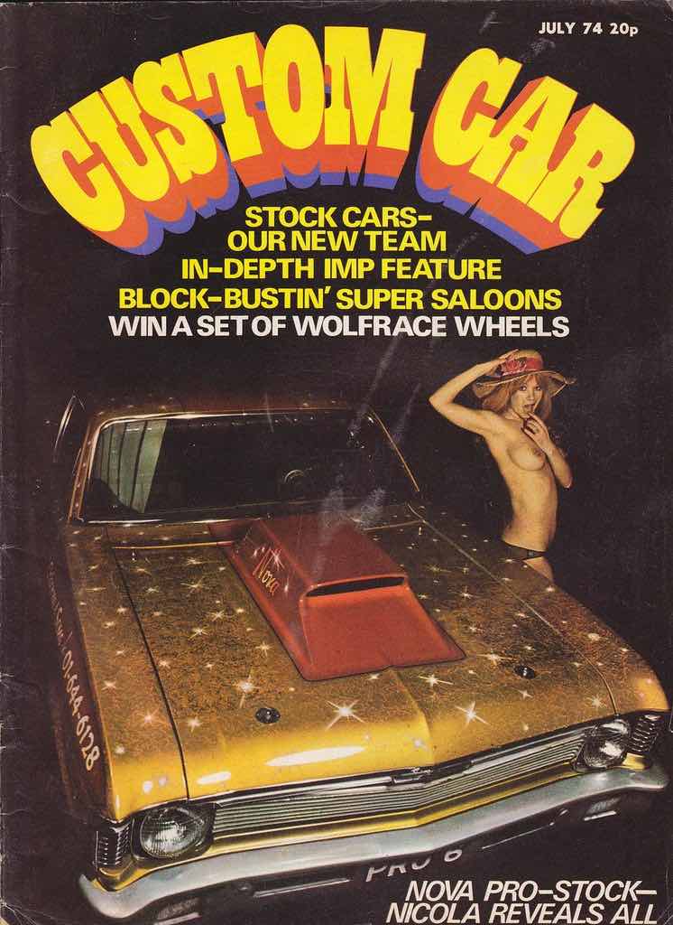A great case in point is Custom Car magazine, which launched in 1970 and quickly learned that topless girls were a great additional selling point. Ostensibly a publication for fans of souped-up cars – which some of the readers probably found just as sexy and arousing as any naked girl – the somewhat anarchic style and fascination with American drag racing and legally-questionable car enhancements quickly attracted the sort of readership that more staid automobile publications didn’t reach. This readership – primarily teenage boys, many of whom were probably too young to actually drive – was just the sort to respond to the addition of topless models, not just on the cover but also in centrefold shots and scattered throughout the rest of the magazine. It was the ideal combination for the target audience – these horny teens could pretend (possibly even to themselves) that it was the cars that they were interested in rather than the barely-dressed girls, and newsagents were probably not going to turn them away in the way that they might if they tried to buy a copy of, say, Mayfair.