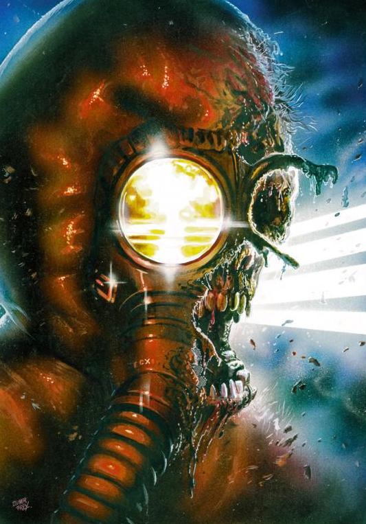 Frey, who was born in Switzerland in 1948, moved to Britain in the 1970s and soon established himself as an artist in demand. Amongst his most famous work was the pre-title sequence in Superman – The Movie, which set the scene for that comic book adventure. But perhaps his most iconic work was for Newsfield Publications, the magazine publisher launched by his partner Roger Kean. For Newsfield, Frey became the regular cover artist for CRASH and Zzap64, two early computer games magazines – his iconic covers, often strikingly dramatic and frequently extravagantly violent (you can’t imagine these passing muster with WH Smiths in later years) are forever burnt into the memories of young gamers – they provided dramatic and visually impressive versions of games that in reality had rather primitive graphics, becoming the version of the game that existed in the imagination. Frey also provided illustrative covers for the serious and determinedly upmarket horror magazine Fear, also published by Newsfield. In fact, he was producing so much art that it’s even more impressive how good his work was – this material must’ve been churned out and yet it has the style and complexity of something that had been laboured over for ages.