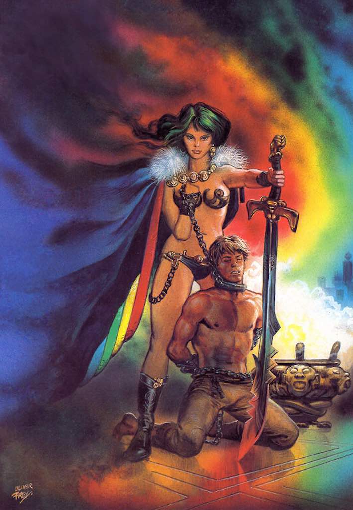 Sometimes, the two worlds would blur. A muscled barbarian on the cover of one CRASH looks uncannily like one of his dominant gay men and you can see elements of his BDSM fantasies on other covers. Some of Frey’s gay work – the more commercial, less explicit illustration – bears his real name and he never actually tried to keep his adult work a secret – it’s just that the two worlds were very separate and there was no point in blurring the lines more than was necessary. Ironically, although his gay erotic art was the subject of an exhibition at the British Library in 2014 – giving it a degree of establishment respectability that was denied to his more mainstream art.